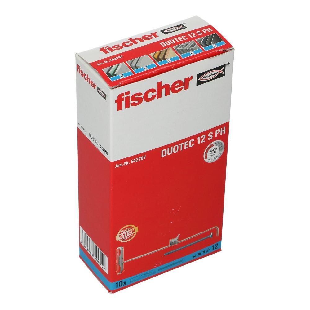 De unieke werking en de geometrie van de plug van de Fischer DUOTEC maken een voor tuimelpluggen uiterst zware belastingen mogelijk. Dat reduceert bij meervoudige bevestigingen het aantal bevestigingen en maximaliseert de veiligheid. De DUOTEC bestaat als onderdeel van de DUO-Line uit twee kunststof componenten. Het rode en harde component van de huls van de plug maakt de gelijkmatige verdeling van de belasting mogelijk, de grijze en witte voorkomen bij de bevestiging de beschadiging van het oppervlak van de plaat en daarmee een belastingvermindering. Bij toepassingen in plaatmaterialen, waar een holle ruimte achter zit, wordt de DUOTEC als een tuimelplug aangebracht. In massieve bouwmaterialen kan de plug ook als spreidplug worden gebruikt.