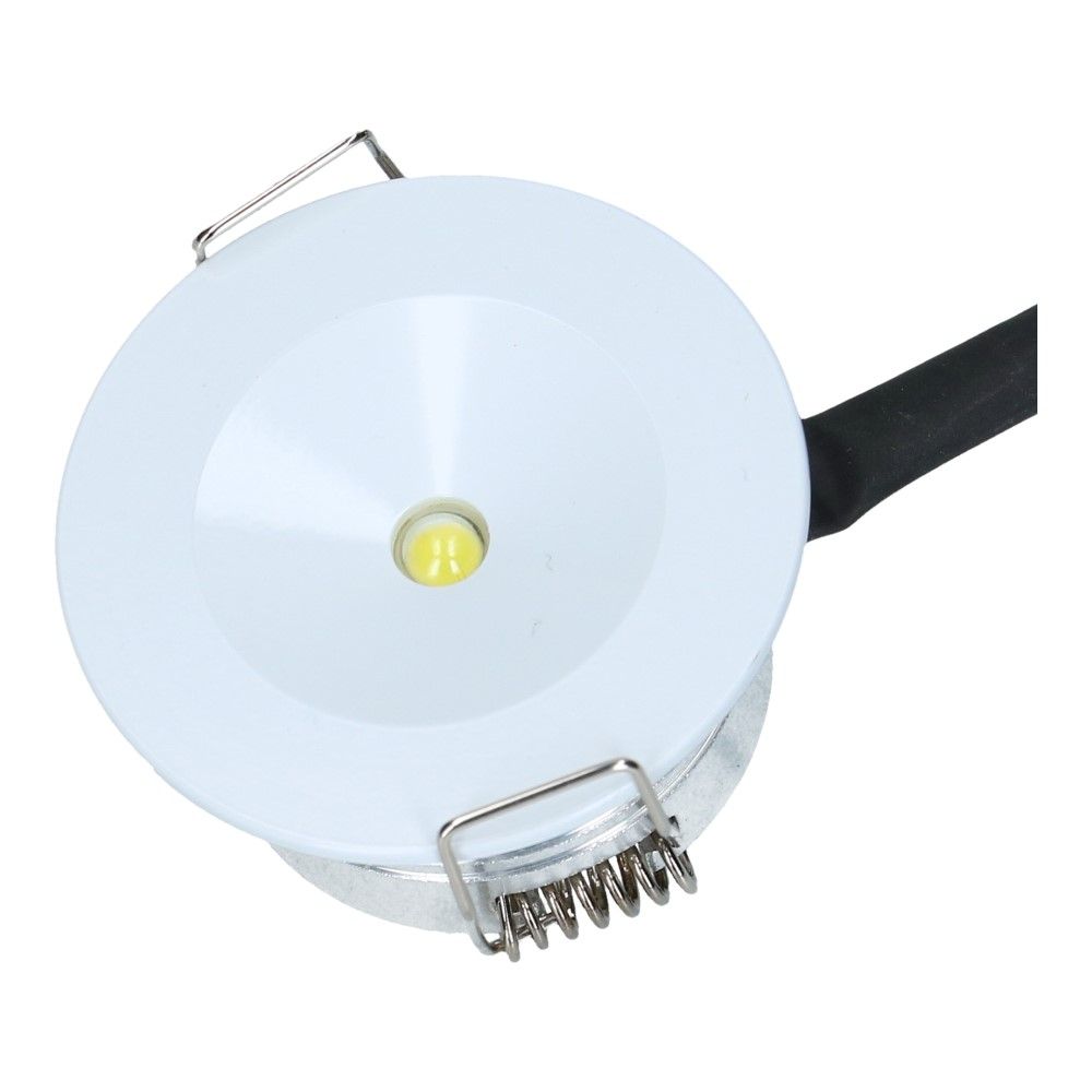 Dit anti paniek inbouw noodverlichtingsspotje zorgt voor oriëntatieverlichting bij spanningsuitval. Deze mini spot is ideaal om te plaatsen naast armaturen als vervanging van een noodunit. Deze mini spot wordt compleet geleverd inclusief led-driver en 3-uurs accu. Indien het armatuur is aangesloten op de netspanning brandt een groene indicatieled. Zodra de netspanning uitvalt schakelt deze spot over op de accu en gaat de powerled branden, en wordt geleverd met een witte aluminium afdekking. Het armatuur wordt plug & play geleverd inclusief 1,5 meter snoer met stekker.