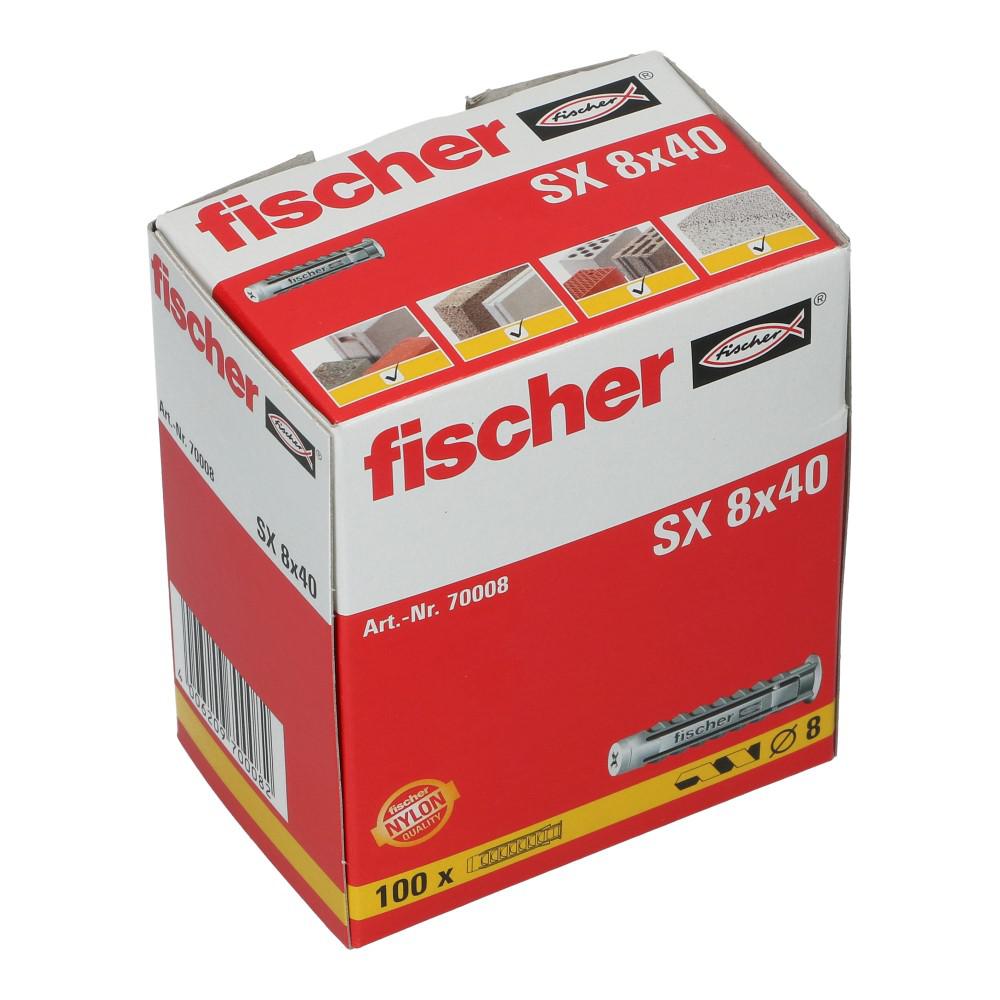 Door de viervoudige spreiding geleidt de fischer Plug SX de krachten optimaal in het bouwmateriaal. Naast de typische spreiding staat ook het bij de productie gebruikt, kwalitatief hoogwaardig nylon garant voor een betrouwbare en langdurige bevestiging. Deze variant met een grotere verankeringsdiepte is ideaal voor bevestigingen in geperforeerd bouwmateriaal, in cellenbeton en voor het overbruggen van pleisterlagen.